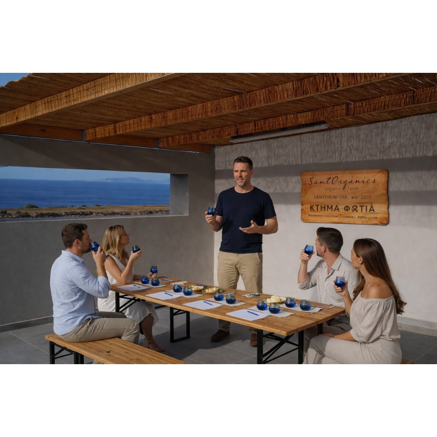 Walk around the 1st & unique organic vineyard of black raisin in Santorini and taste its rare Liqueur.