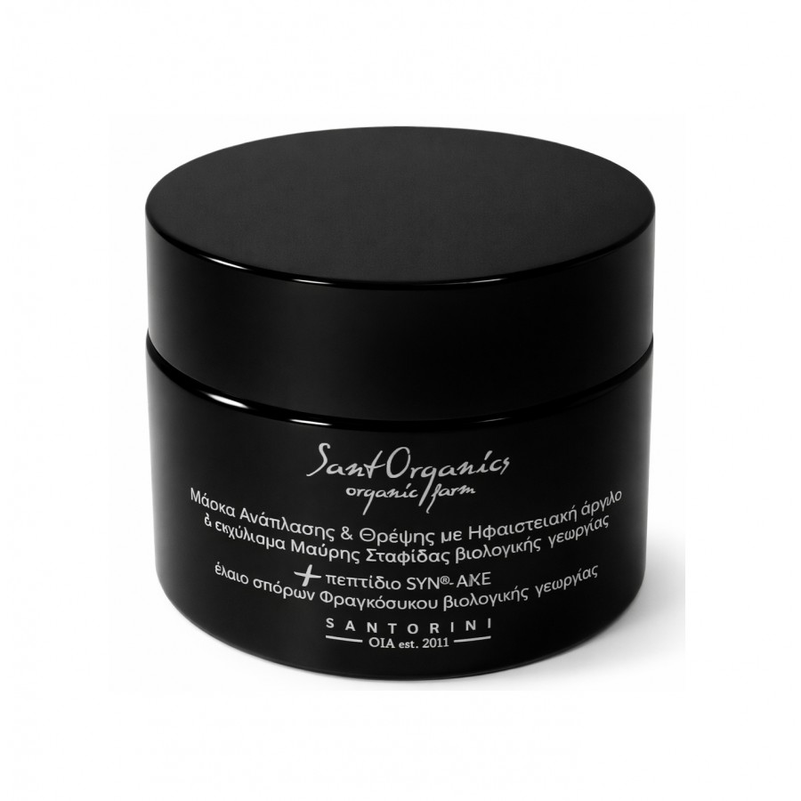 Εμπλουτισμένη με ισχυρά δραστικά συστατικά παρέχοντας πολλαπλή δράση στο πρόσωπο. Η Ηφαιστειακή άργιλος & η τέφρα προσφέρουν λεία επιδερμίδα με ήπια απολέπιση. Το συμπυκνωμένο εκχύλισμα Μαύρης Σταφίδας βιολογικής γεωργίας από το βιολογικό αμπελώνα SantOrganics πλούσιο σε ρεσβερατρόλη αποτρέπει την πρόωρη γήρανση ενισχύοντας την ελαστικότητα του δέρματος. Το πεπτίδιο SYN-AKE (όμοιο με δηλητήριο οχιάς) βοηθά στη μείωση της εμφάνισης των ρυτίδων με ταχεία δράση & μακρά διάρκεια. Το έλαιο σπόρων Φραγκόσυκου βιολογικής γεωργίας του βιολογικού μας αγροκτήματος SantOrganics διαθέτει πρόσθετη επανορθωτική & καταπραϋντική δράση.